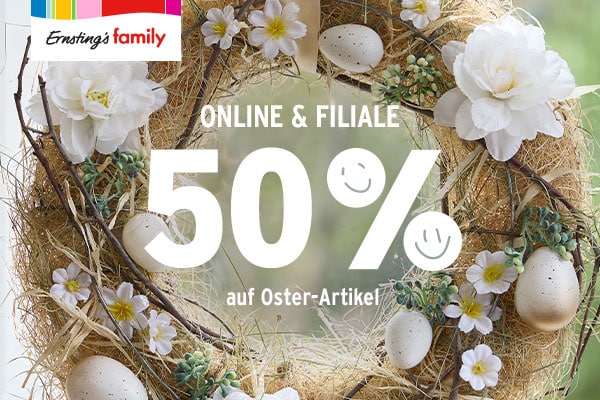 Ostern steht vor der Tür! Bei Ernsting’s famliy gibt es vom 30. März bis 06. April 50 % auf Osterartikel